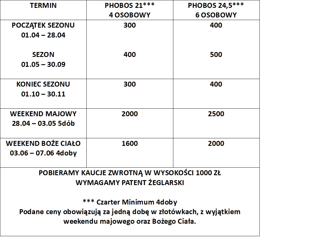 UWAGA – WYMAGANE UPRAWNIENIA ŻEGLARSKIE!